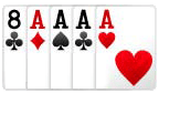 FOUR OF KIND : kartu terkuat ke 3 dalam permainan poker. Kombinasi kartu ini hanya membutuhkan 4 angka yang sama. Misal : As♦ - As♥ - As ♠ - As ♣ - 10 ♣ atau 8 ♣ - 8♦ - 8♥ - 8 ♠ - 1♦